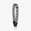 Bandolera larga ajustable con doble clip, para usar en combinación con cualquier bolso con ganchos. hecho de cinta negra. Adornado con motivo ff en dorado y detalles en piel blanca. artículos de metal con acabado dorado.