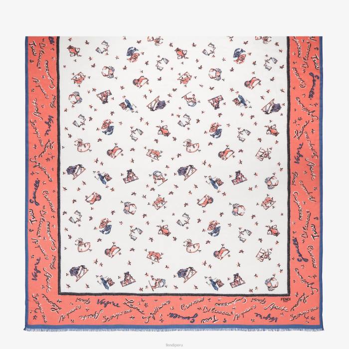 Estola grande rectangular de color rosa hecha de una suave mezcla de modal y seda. personalizado con un estampado integral con motivo astrológico Fendi en colores contrastantes.