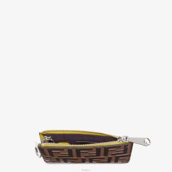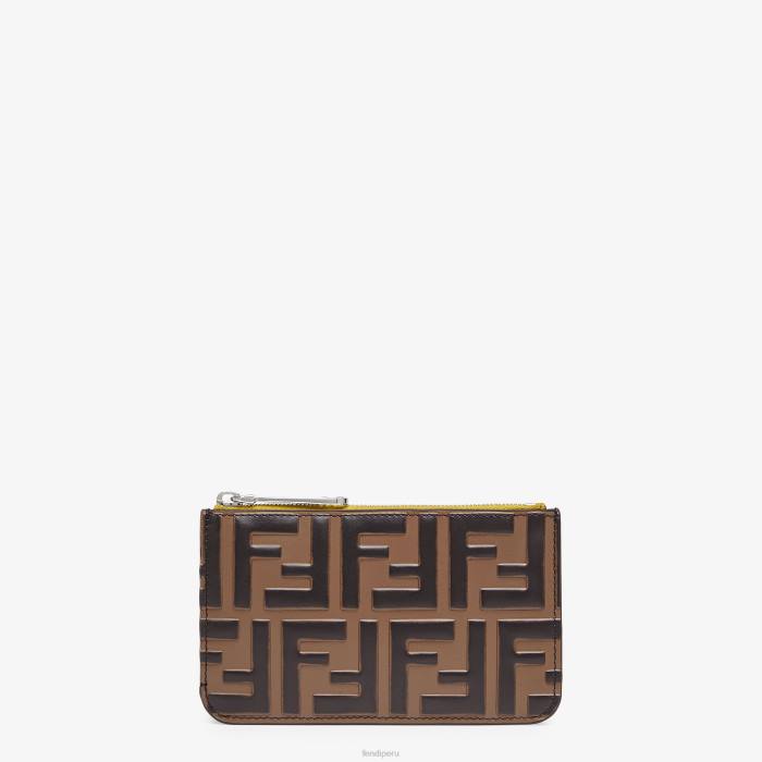 F es un llavero fendi con laterales reforzados. la parte trasera cuenta con cuatro ranuras para tarjetas. En el interior hay una correa extraíble con clip. cierre de cremallera. Confeccionado en cuero crucero martillado de color amarillo. adornado con motivo ff en relieve y pintado a mano. Artículos metálicos con acabado en paladio.