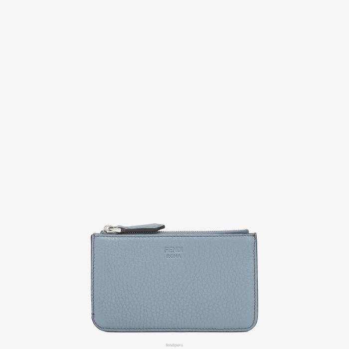 Fendi mujer estuche para llaves peekaboo bolsa de cuero 2LH8E1572 accesorios azul claro