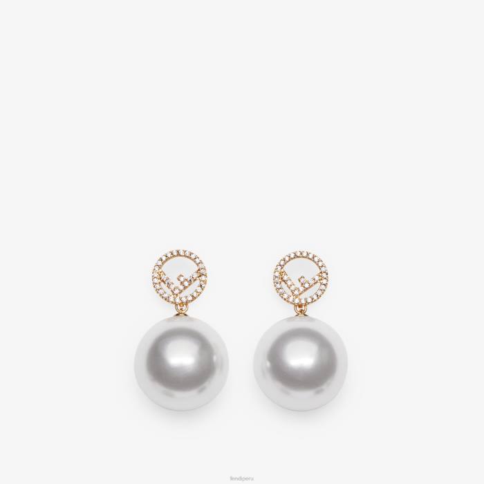 Pendientes con forma de logo f is fendi y colgante. fabricado en metal con acabado dorado. decorado con una gran perla y detalles de cristal natural.