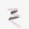 Fular cuadrado confeccionado en sarga de seda en tonos rosas. estampado con el motivo fendi baguette enmarcado por rayas color block. dobladillos cosidos a mano.