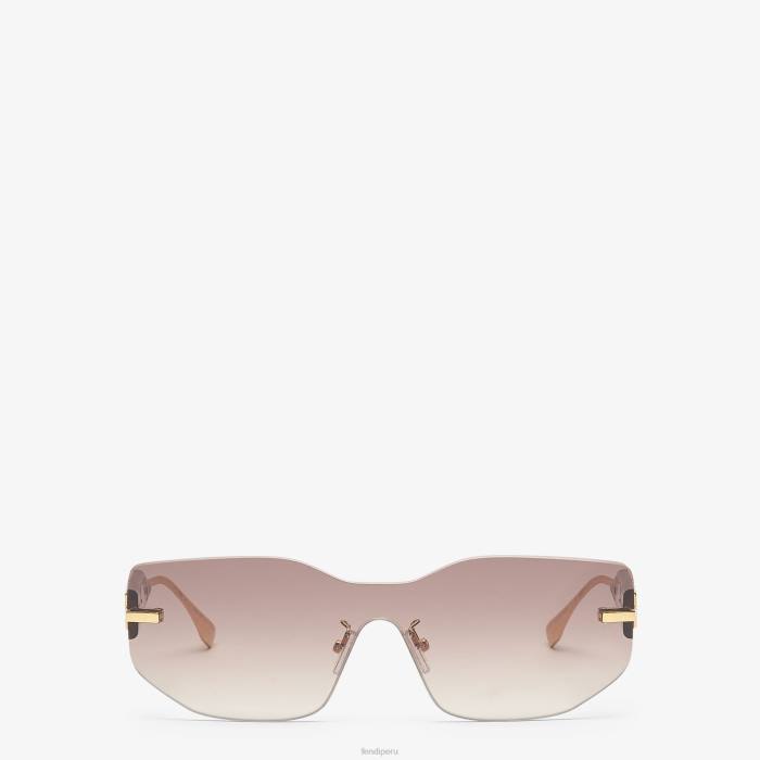 Anteojos rectangulares con escudo fendigraphy inspirados en el bolso hobo. patillas con maxi letras fendi de metal dorado en línea. lentes marrones degradados y plaquetas nasales ajustables.