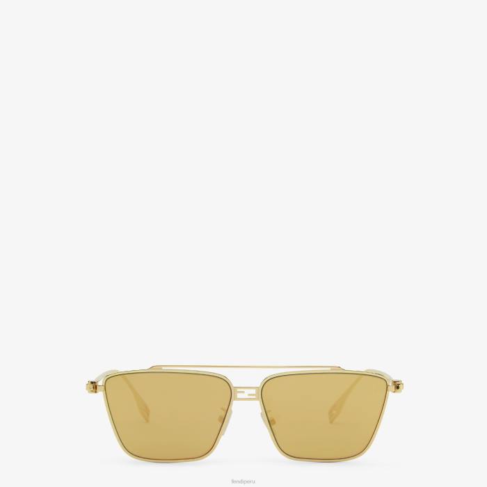 Anteojos baguette rectangulares en metal dorado con doble puente y logo baguette que embellece el puente y las puntas. almohadillas nasales ajustables y lentes doradas espejadas.