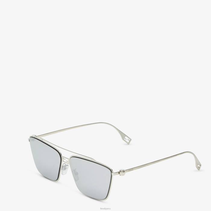 Anteojos baguette rectangulares en metal plateado con doble puente y logo baguette que embellece el puente y las puntas. almohadillas nasales ajustables y lentes blancas espejadas.
