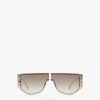 Gafas de sol rectangulares con escudo fendigraphy inspiradas en el bolso hobo. patillas con maxi letras fendi de metal dorado en línea. lentes negros. almohadillas nasales ajustables.