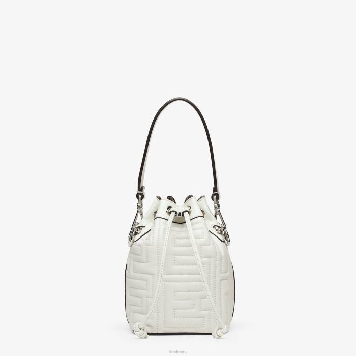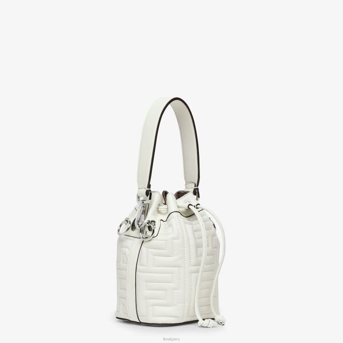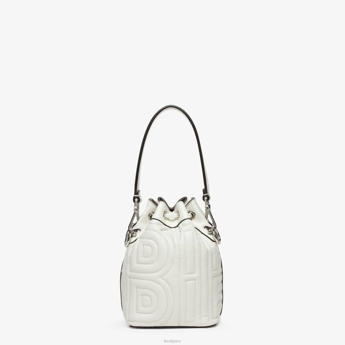 Bolso bombonera pequeño mon tresor. Este modelo, que forma parte de la edición limitada de Fendi by Marc Jacobs, está confeccionado en cuero blanco con letras Fendi Roma acolchadas y en relieve.