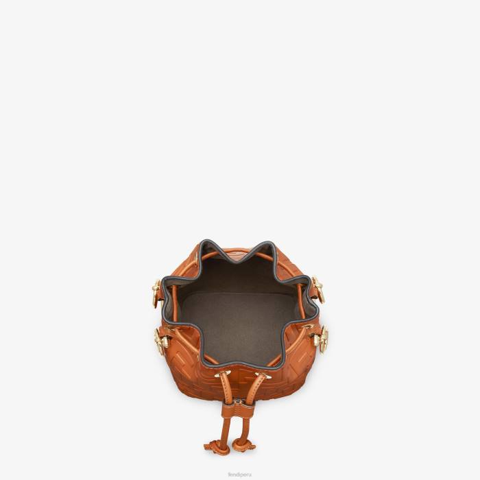 Bolso bombonera pequeño mon tresor de piel marrón con motivo ff grabado con textura tridimensional.