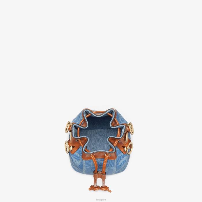 Fendi mujer minibolso denim con bordado ff 2LH8E625 accesorios azul claro