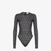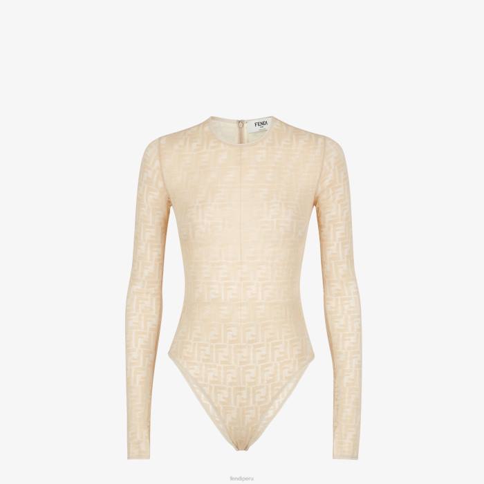 Body ajustado con cuello redondo y manga larga. Cierre de media cremallera en la espalda. Confección en encaje con motivo ff integral en color beige.