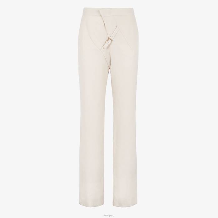 Fendi mujer pantalones de lana grano de poudre 2LH8E988 vestir blanco