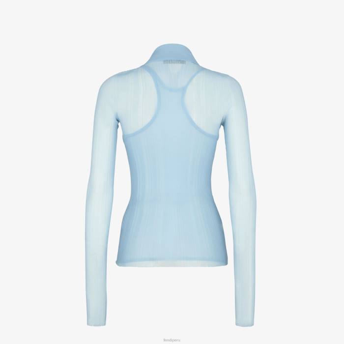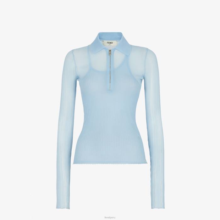 Fendi mujer polo de seda 2LH8E927 vestir azul claro