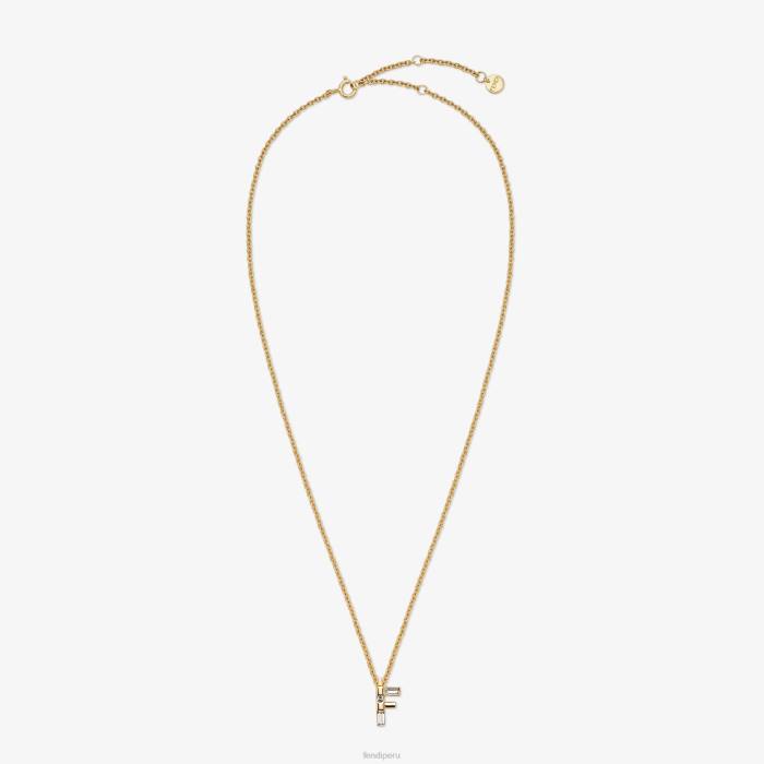 Collar fino con colgante con el primer logotipo de Fendi. fabricado en metal con acabado dorado. decorado con cristales circulares blancos con talla baguette.