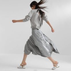 Fendi mujer sandalias de cuero de tacón alto 2LH8E1341 zapatos plata
