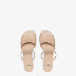 Fendi mujer sandalias de piel con tacón medio 2LH8E1371 zapatos beige