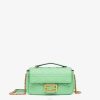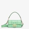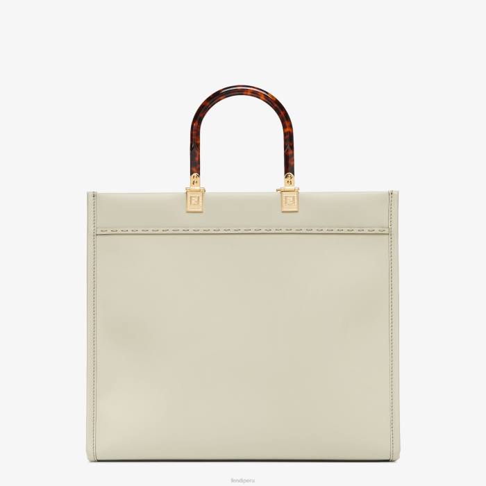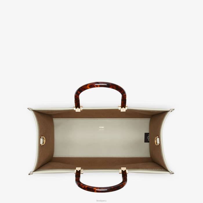 Bolso shopper mediano Sunshine confeccionado en piel verde claro con “fendi roma” estampado en caliente y asas rígidas de plexiglás con efecto carey.