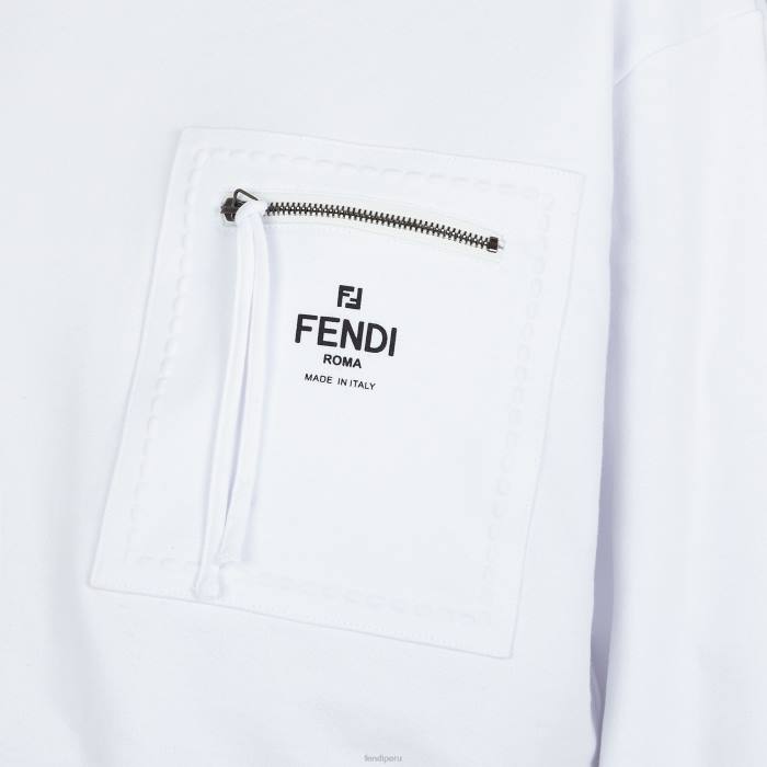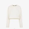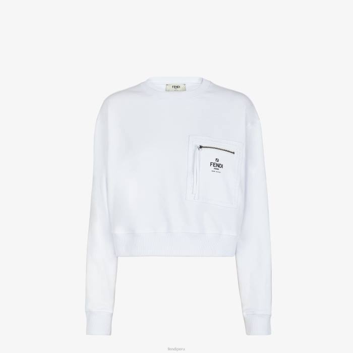 Sudadera cropped con cuello redondo y manga larga. confeccionado en jersey de algodón blanco. Marca con letras Fendi Roma bordadas en negro en la parte delantera.