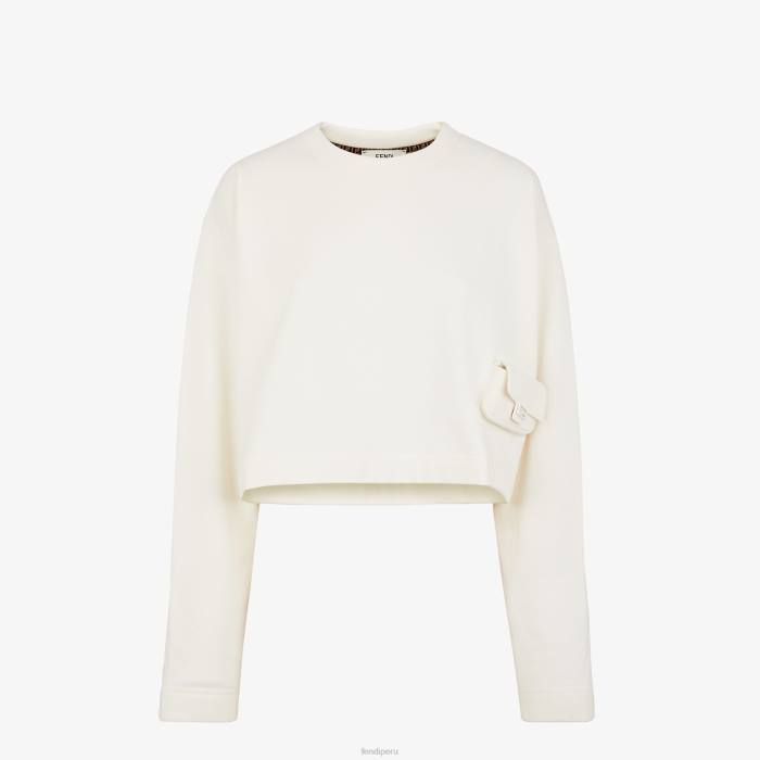 Sudadera corta de gran tamaño con mangas largas y escotadas. confeccionado en jersey de algodón blanco. decorado con minibolso baguette a juego aplicado en el bajo.