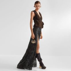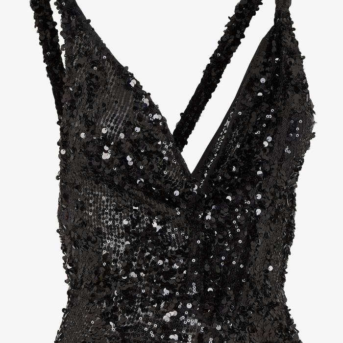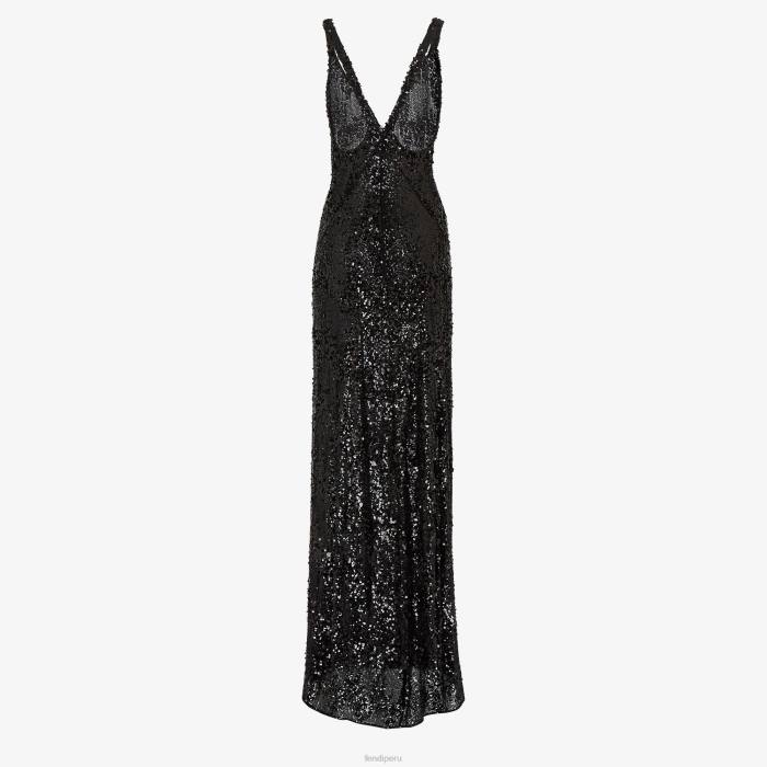 Fendi mujer vestido de lentejuelas y gasa 2LH8E1184 vestir negro