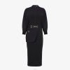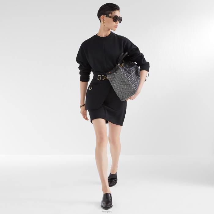 Vestido corto estilo sudadera con escote redondo y manga larga. La prenda presenta un cinturón extraíble con peplum lateral y bolsillo ribeteado. Hebilla fendi o’lock de metal con acabado dorado. Confeccionado en suave jersey negro.