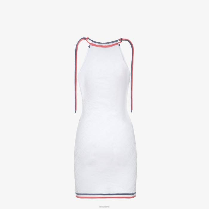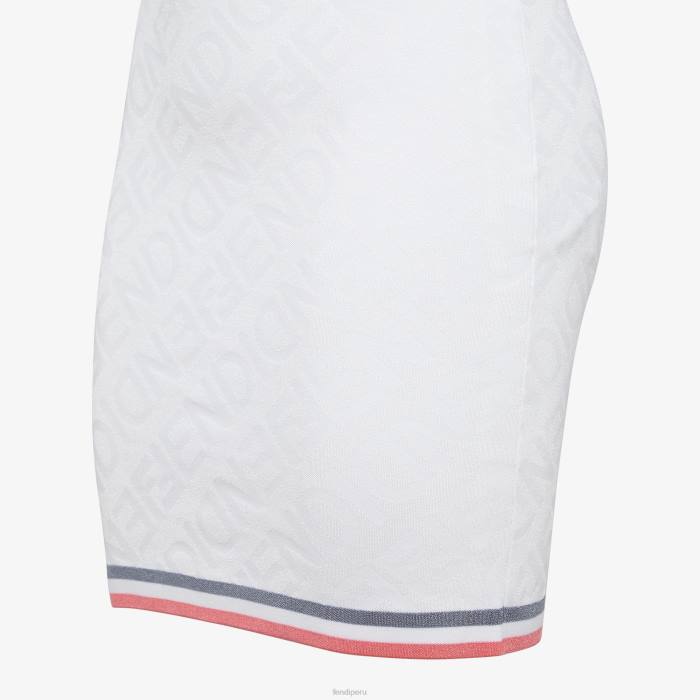 Vestido corto sin mangas con cuello halter. equipado. confeccionado en punto de viscosa blanco con intarsia con letras de espejo fendi del mismo color.