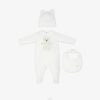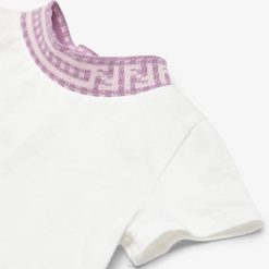 Camiseta para bebé de punto blanco con logo ff lila en el cuello.