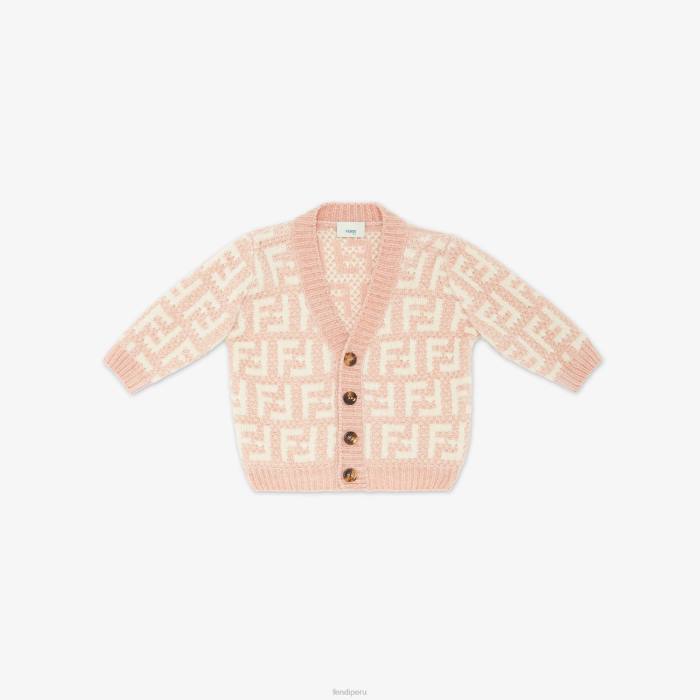 Cárdigan para bebé de chenilla con motivo FF por toda la prenda en color crema y rosa.