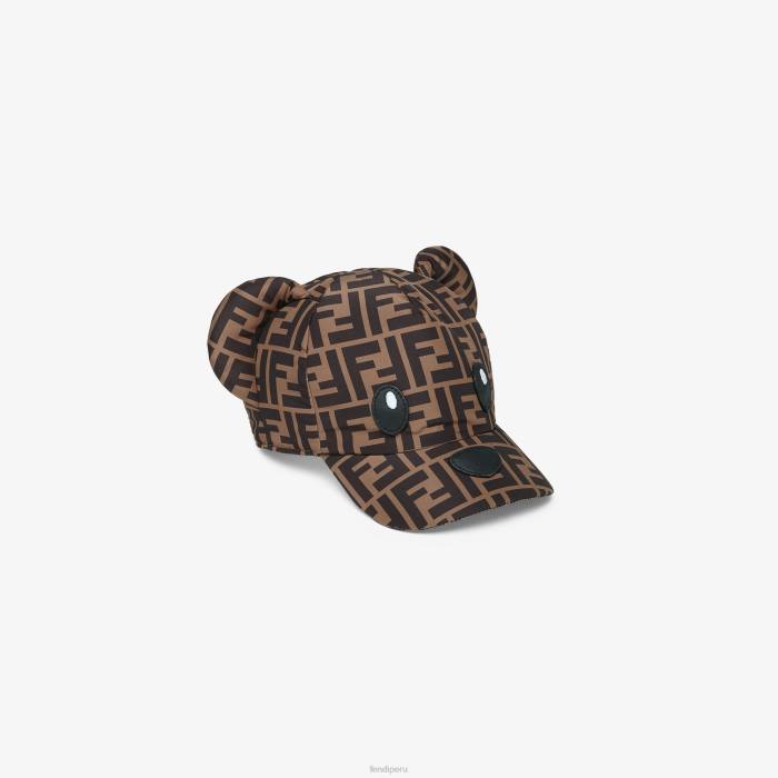 Gorra de béisbol junior de nailon con detalle de osito y orejas y logo ff color tabaco estampado por toda la prenda.