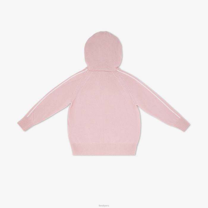 Jersey junior de puro cashmere rosa con capucha e intarsia con inscripción fendi roma en blanco en la parte delantera.