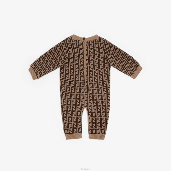 Fendi niños mameluco de algodón y cachemir tabaco 2LH8E2781 vestir moda