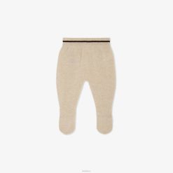Pantalón de bebé 100% cashmere beige con pies y bordado de osito fendi en la espalda.