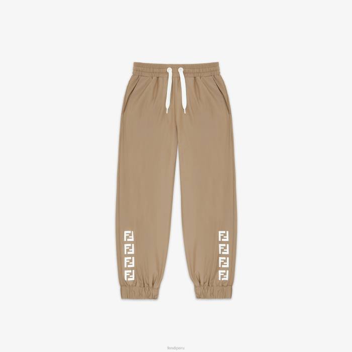 Pantalón jogging junior en tejido técnico beige. cordón blanco en la cintura y logo ff estampado en el bajo.