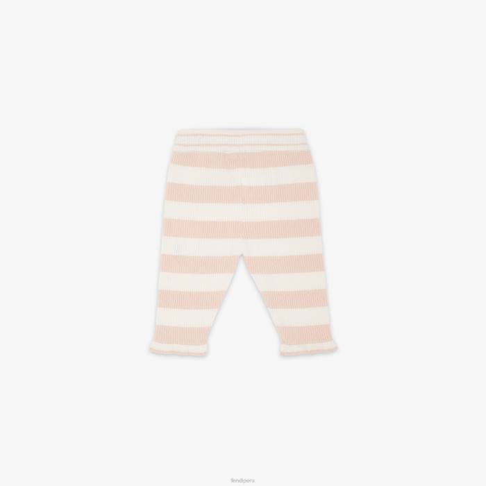 Pantalón de bebé en punto de mezcla de lana a rayas color crema y rosa. con volantes y logo ff rosa en la cintura.