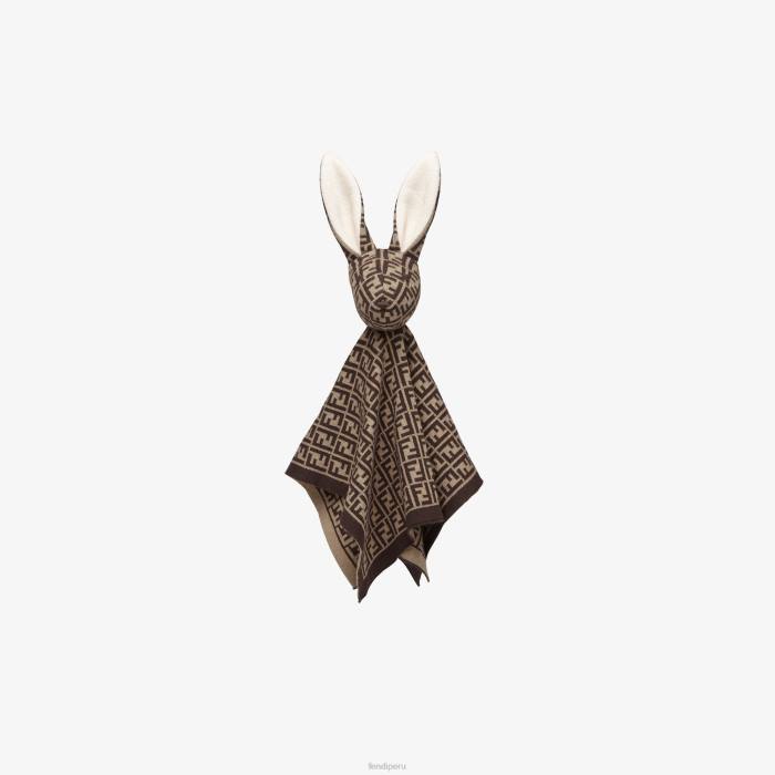 Peluche para bebé en forma de conejito confeccionado en algodón y cachemir con logo ff color tabaco por toda la superficie.