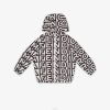Sudadera junior de lana fucsia con capucha e intarsia grande del osito fendi con logo ff tabaco.